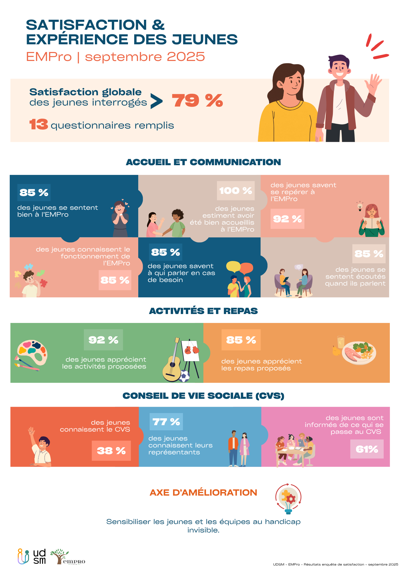Dans cette dynamique d’amélioration continue, une enquête de satisfaction a été menée auprès des jeunes accompagnés à l’EMPro.